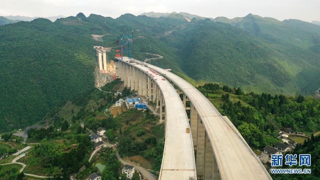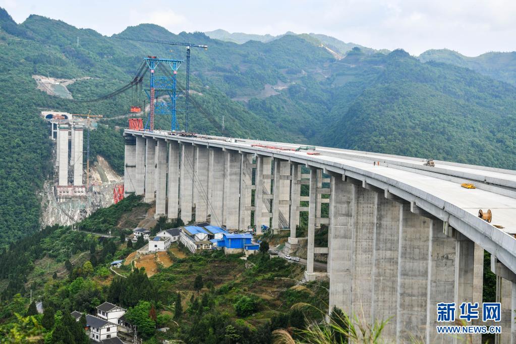 這是4月22日拍攝的貴州省仁遵高速公路大發(fā)渠特大橋施工現(xiàn)場(chǎng)(無人機(jī)照片)。