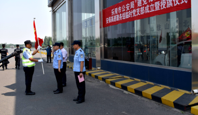 6月26日,京滬高速魯冀公安檢查站建黨100周年安保勤務(wù)臨時(shí)黨支部正式成立。副市長、市公安局局長王立新參加并為京滬高速魯冀公安檢查站臨時(shí)黨支部授旗。
