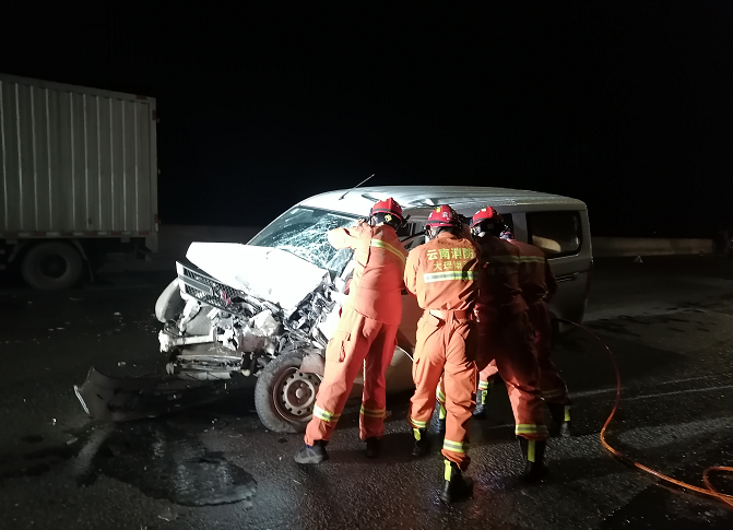 3月26日20時06分,南澗縣消防救援大隊接到群眾報警稱:南澗往彌渡方向松香廠不到300米處,發(fā)生一起交通事故,一輛小型貨車和面包車相撞,面包車內(nèi)有1名人員被困,情況十分緊急,南澗縣消防救援大隊接警后立即出動2車10人前往處置。