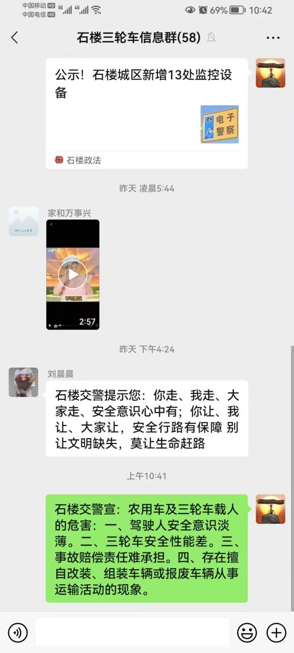 活動中,宣傳民警以轄區(qū)近期發(fā)生的有關(guān)三輪車違法載人真實事故案例為宣傳素材,通過散發(fā)和宣讀精心制作的宣傳資料,采取面對面與群眾講法律、說案例、倡安全等有效形式,講解農(nóng)用三輪車違法載人行為可能導(dǎo)致的災(zāi)難性后果;同時,通過在自建農(nóng)村三輪車駕駛員微信群中發(fā)布三輪車交通違法引發(fā)的典型事故案例、集中整治情況等信息,讓“禁止三輪車違法載人”這一觀念深入人心,三輪車駕乘人員自覺遵守交通安全法規(guī),逐步養(yǎng)成了文明安全出行的良好習(xí)慣。