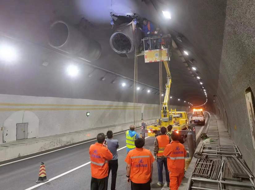 當(dāng)日,承德分公司加強(qiáng)了隧道口人員值守,設(shè)置安全警示標(biāo)識(shí)、24小時(shí)監(jiān)控、隧道廣播提醒等臨時(shí)管控措施,保障隧道內(nèi)安全通行,同時(shí),安排專人進(jìn)行監(jiān)控視頻倒查,鎖定嫌疑車輛,為下一步索賠留存了證據(jù)。 22時(shí)46分,在聯(lián)合指揮調(diào)度中心統(tǒng)一指揮調(diào)度下,轄區(qū)內(nèi)交警、路政、養(yǎng)護(hù)等相關(guān)部門到達(dá)現(xiàn)場(chǎng),立即開(kāi)展搶修保通各項(xiàng)應(yīng)急處置工作。高速交警、路政在承德機(jī)場(chǎng)收費(fèi)站啟動(dòng)分流管控,阻止后續(xù)車輛進(jìn)入隧道,預(yù)防二次事故發(fā)生。收費(fèi)站工作人員積極配合交警、路政等部門疏導(dǎo)車輛,并耐心做好分流車輛解釋工作。養(yǎng)護(hù)、機(jī)電等部門迅速對(duì)風(fēng)機(jī)進(jìn)行拆卸、更換、試運(yùn)行。經(jīng)過(guò)多方應(yīng)急力量一小時(shí)的聯(lián)合搶修,23:59分 ,現(xiàn)場(chǎng)處理完畢,安全隱患徹底消除,隧道恢復(fù)了正常有序通行。