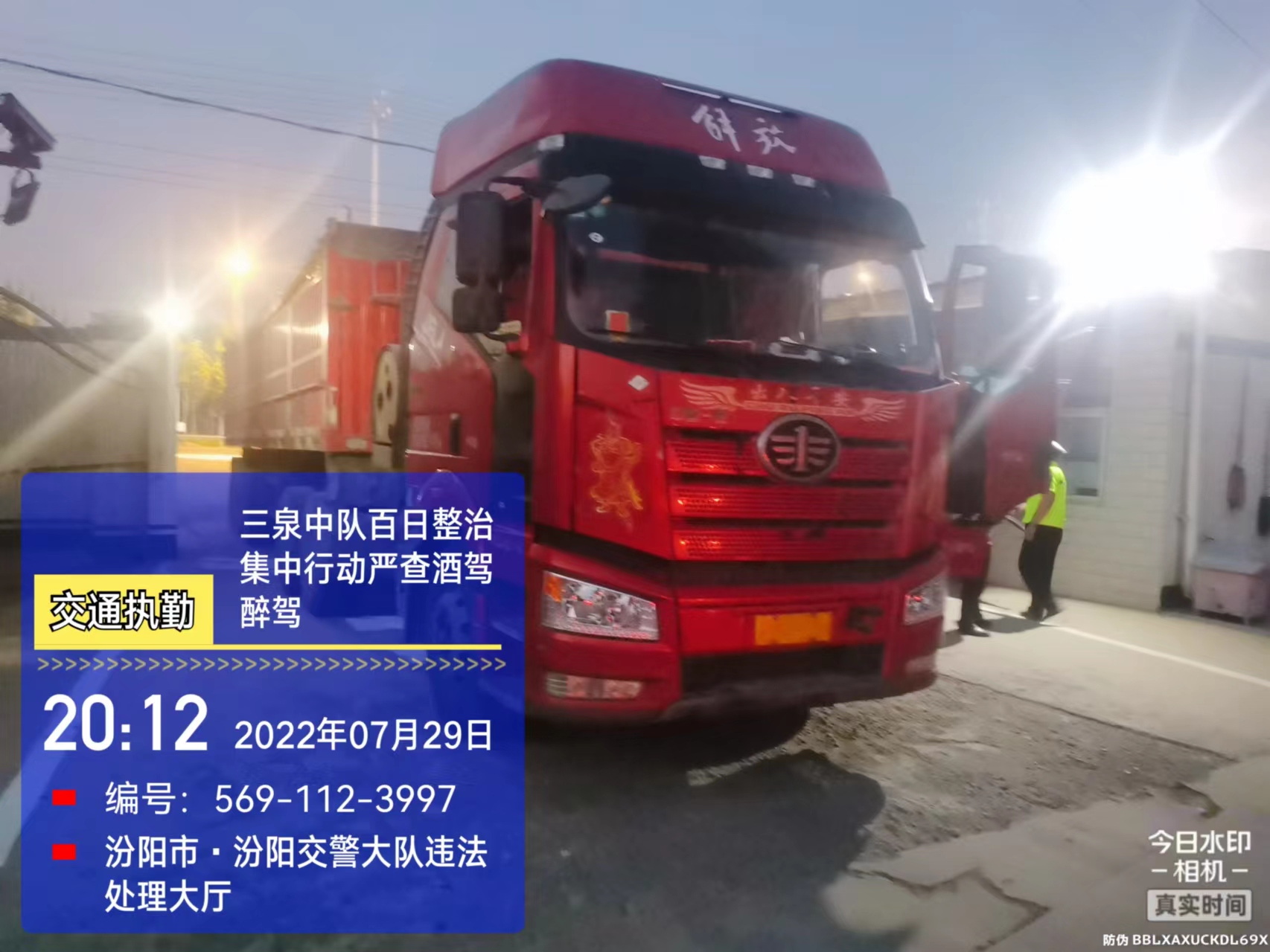 2022年7月29日19時(shí)52分,汾陽交警大隊(duì)三泉中隊(duì)民警在省道340線(汾柳線)5公里路段開展夏季整治百日行動(dòng),在對一輛大貨車進(jìn)行檢查時(shí),發(fā)現(xiàn)該重型半掛牽引車駕駛?cè)嗽城宕嬖诰岂{嫌疑,經(jīng)呼氣式酒精測試儀檢測結(jié)果為44mg/100ml,民警對駕駛?cè)孙嬀坪篑{駛營運(yùn)機(jī)動(dòng)車的交通違法行為,處于行政拘留15日,罰款5000元,吊銷駕照且5年內(nèi)不得重新申領(lǐng)。