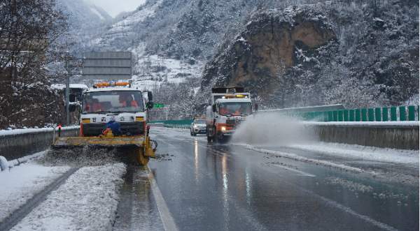 降雪發(fā)生后,隴南高養(yǎng)所根據(jù)隴南公路發(fā)展中心的調(diào)度指令,按照省中心提出的除雪保暢“十個務(wù)必到位”及“44條工作要點(diǎn)”,連夜組織人員、機(jī)械全力進(jìn)行連續(xù)不間斷除雪防滑保暢工作。截止22日中午,共出動人員25人次,巡查車5輛、除雪車2輛、融雪劑撒布車2輛,共撒布融雪劑20.5噸,經(jīng)過連夜奮戰(zhàn),轄養(yǎng)高速公路路面積雪清除完畢。