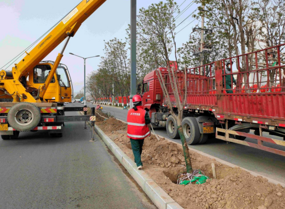 據(jù)悉,該項目濟源市黃河大道、濟源大道等主干要道的綠化施工進展迅速,駕車或步行途中,已經(jīng)可以看到包括重陽木、櫻花樹、桂花、樹狀月季等在內的多種造型樹木挺立兩旁,并搭配了海桐球、紅葉石楠等各類觀賞性灌木,預計苗木成活成蔭后,將會極大的提升濟源市容市貌、改善周邊整體人居環(huán)境。為保障施工節(jié)點盡早達成,該項目部統(tǒng)籌調度人力機械,加強了對現(xiàn)場的組織協(xié)調,遵循“美化、安全兩不誤”的綠化理念,工人們嚴格按照指揮緊張有序的開展株距測量、挖掘、移栽、保護支撐及澆灌作業(yè),各道工序穿插高效、井井有條。