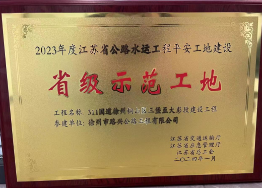 近日,在江蘇省交通運(yùn)輸廳、省應(yīng)急管理廳、省總工會(huì)三部門(mén)聯(lián)合發(fā)布的2023年度全省公路水運(yùn)工程平安工地建設(shè)省級(jí)“示范工地(工程)”公示名單中,311國(guó)道徐州銅山區(qū)三堡至大彭段建設(shè)工程(徐州市外環(huán)公路西南環(huán)項(xiàng)目)榜上有名,獲得平安工地建設(shè)省級(jí)“示范工地”榮譽(yù)稱號(hào)。