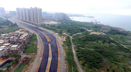 城投集團交建公司相關負責人介紹,全長約5.3公里的紅塔灣旅游公路始于永寧鎮(zhèn)浯沙村,從黃金海岸背后繞過,由西南向東北走向延伸到紅塔灣,終點接上現(xiàn)狀的沿海大通道,并通過石永二路連上峽谷旅游路。道路等級為二級公路兼城市主干道,雙向6車道。項目于今年1月4日開工,目前已完成約六成的施工任務量,除了路基貫通外,路面工程也完成了35%左右,整體進度超額完成預計目標。據(jù)施工單位方面介紹,下一步將加強施工組織管理,優(yōu)化施工方案,增加人員和機械設備投入,在保證施工質量和安全施工的前提下加快推進建設進度。整條道路計劃于明年5月下旬全部完成。