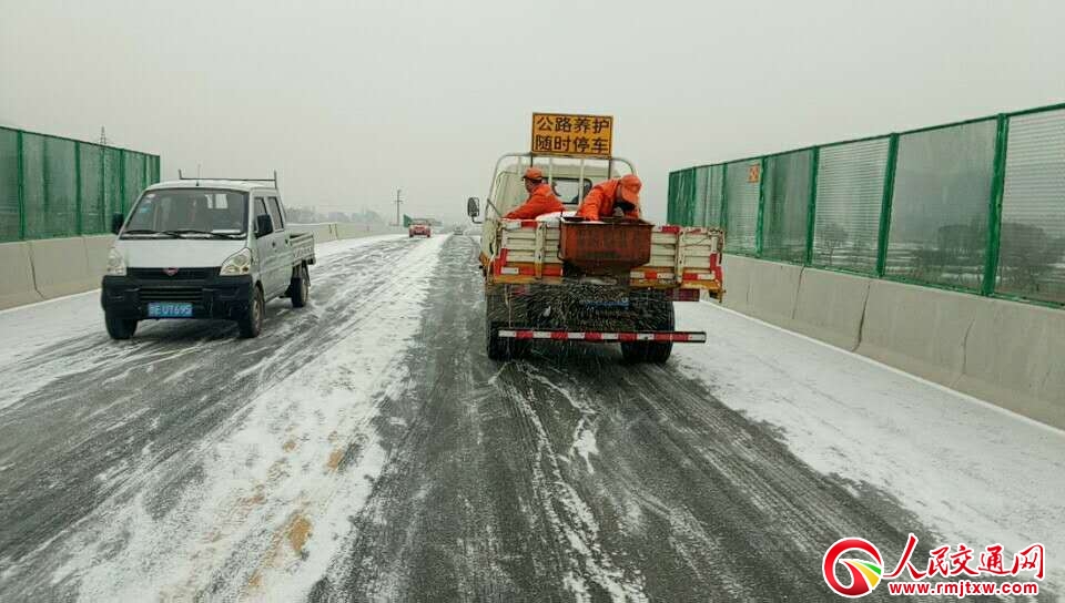 在新一輪降雪開始后,武山段立即按照公路冰雪災(zāi)害突發(fā)事件應(yīng)急預(yù)案,迅速行動,全面加強(qiáng)對轄養(yǎng)路段的巡查力度,針對急彎、陡坡、橋面和局部降雪嚴(yán)重路段,該段科學(xué)調(diào)配應(yīng)急人員和除雪設(shè)備,采取人工配合機(jī)械作業(yè)的方式,拋灑環(huán)保型融雪劑、防滑料,全力清除路面積雪,以防路面出現(xiàn)結(jié)冰造成二次災(zāi)害。