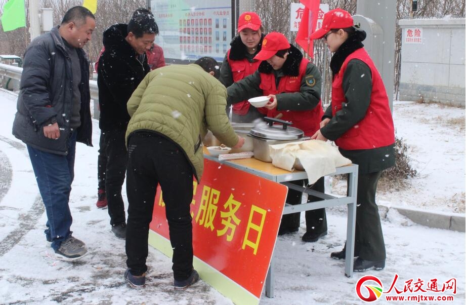 也許一盤(pán)熱菜、一碗小米粥、一個(gè)饅頭不足掛齒,但在這樣一個(gè)寒冷的冬日,雪花飄落的早晨,獨(dú)在異鄉(xiāng)、饑寒交迫的司乘人員看來(lái),卻是一種奢望,但在這里、在望都收費(fèi)站,他們感受到了無(wú)比珍重的情意,暖到心底,感受到了家的溫暖、愛(ài)的親情。