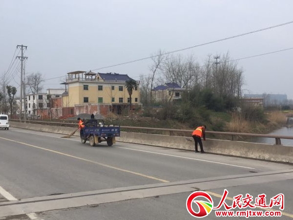 人民交通網(wǎng)訊(通訊員 陳德志)為及時清除橋面灰土等雜物,防止橋涵泄水管堵塞,近日,潁上公路分局針對管養(yǎng)橋涵實際,配合并督促保潔養(yǎng)護(hù)中標(biāo)單位有重點地對轄區(qū)路段橋面進(jìn)行保潔治理,有效防止大氣污染,確保橋涵安全暢通。