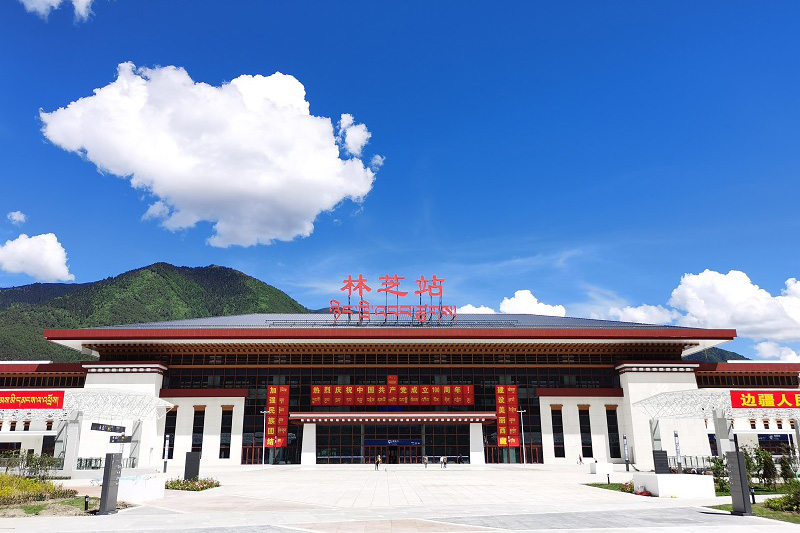 林芝站設(shè)有3座站臺,6條到發(fā)線。站房設(shè)計(jì)運(yùn)用雪白、藏紅等獨(dú)具民族特色的色彩,體現(xiàn)雅魯藏布江大峽谷巨大的山水落差、豐富的生態(tài)氣候和壯麗的自然景色,彰顯“生態(tài)林芝”的理念。