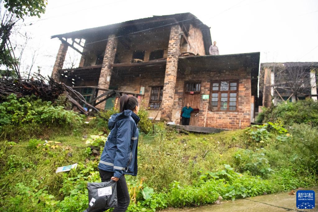 11月3日,在黃市鎮(zhèn)金坪村,胡夏在派送快遞的路上和村民打招呼。