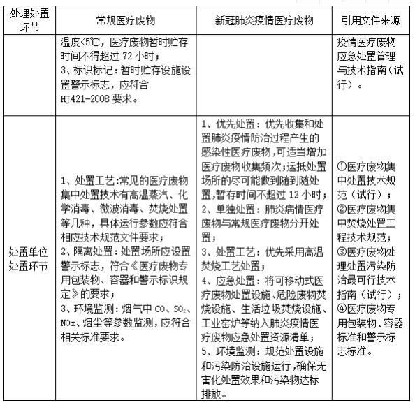 表 新冠肺炎疫情醫(yī)療廢物處理處置全過程環(huán)境管理要求