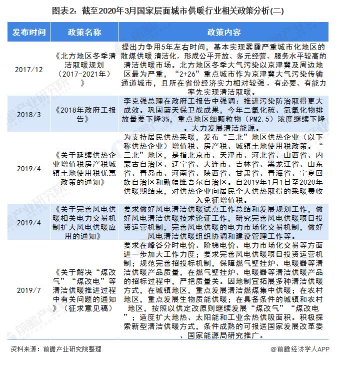 截至2020年3月國家層面城市供暖行業(yè)政策匯總