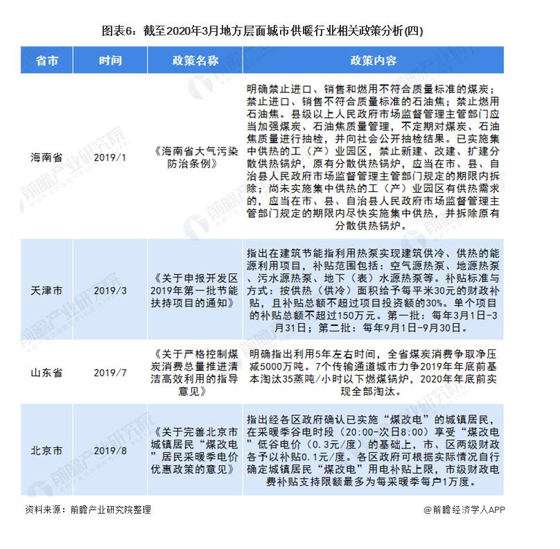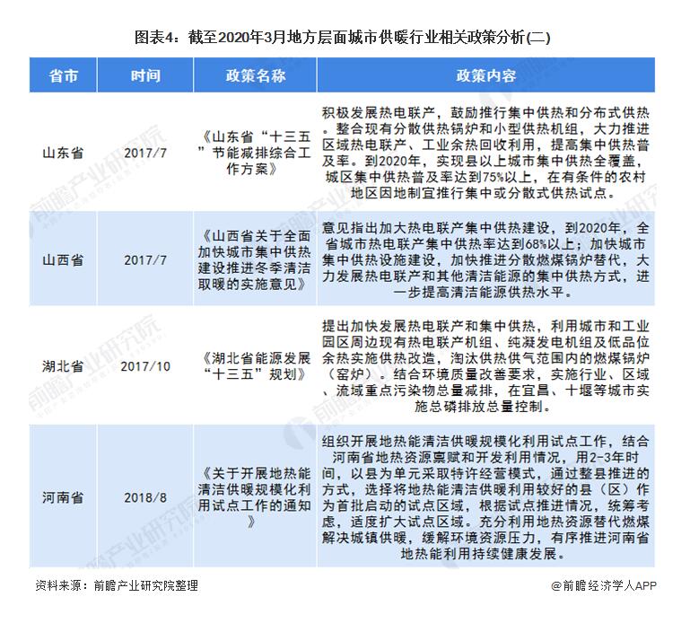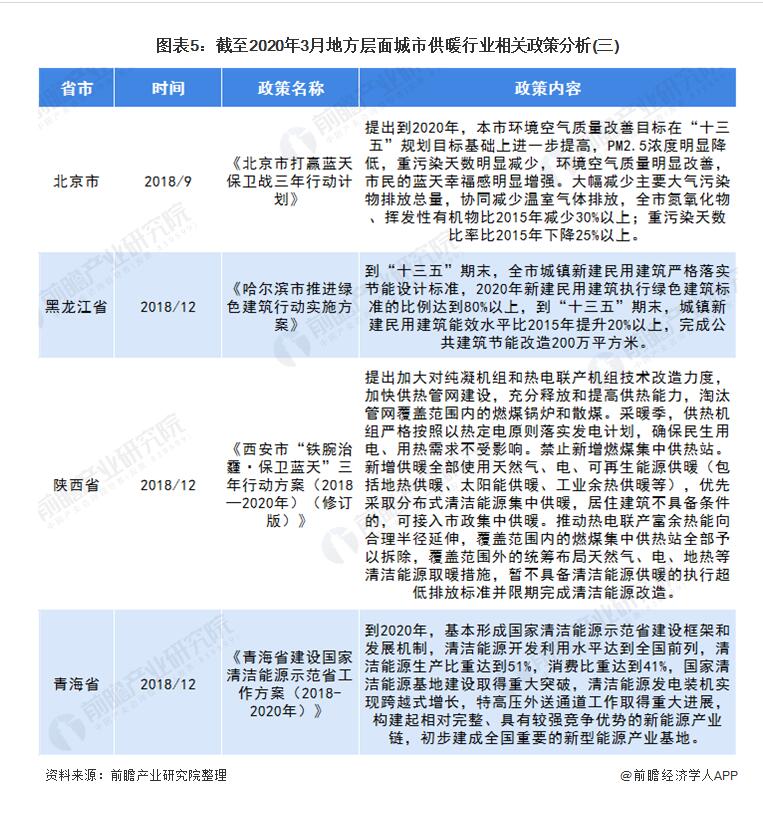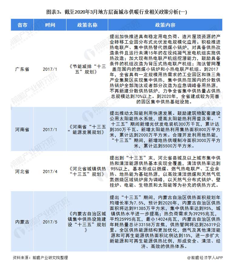 截至2020年3月各省市城市供暖行業(yè)政策匯總
