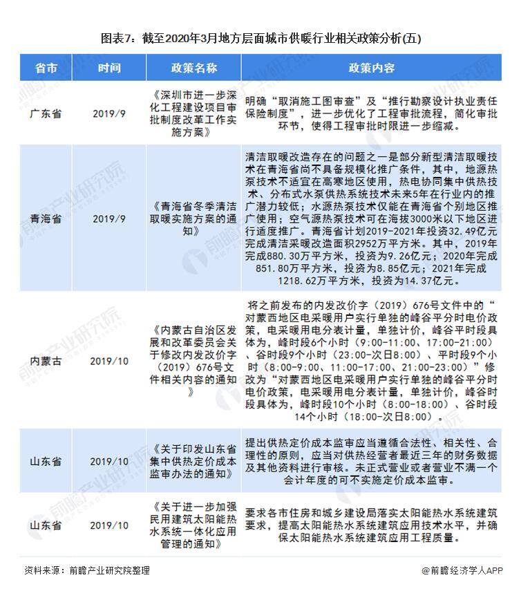 除了國家層面出臺的政策外,各省市地區(qū)根據(jù)當(dāng)?shù)氐奶攸c,出臺供暖政策鼓勵清潔供暖。2019年11月,唐山發(fā)布了《關(guān)于農(nóng)村地區(qū)清潔取暖財政補貼政策有關(guān)事項的通知》,對唐山市農(nóng)村地區(qū)清潔取暖進行財政補貼;2019年10月,山東省住房和城鄉(xiāng)建設(shè)廳發(fā)布《關(guān)于進一步加強民用建筑太陽能熱水系統(tǒng)一體化應(yīng)用管理的通知》,進一步加強民用建筑太陽能熱水系統(tǒng)一體化應(yīng)用管理,促進節(jié)能減排。