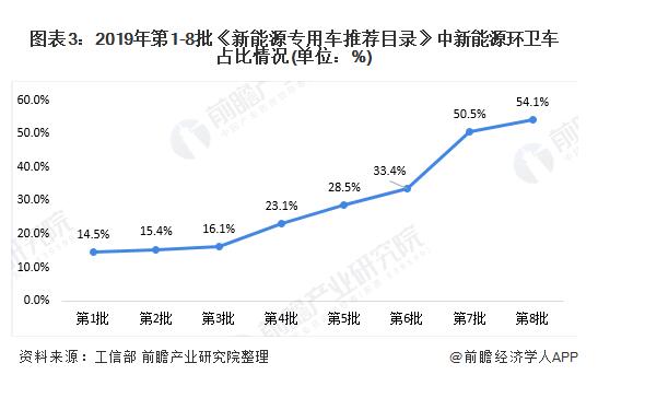 根據(jù)2019年工信部發(fā)布的1-8批《新能源專用車推薦目錄》,新能源環(huán)衛(wèi)車占比逐步提高,由第1批的14.5%提高至第8批的54.1%。新能源環(huán)衛(wèi)車的推廣使用將直接帶動(dòng)其銷量的增長(zhǎng)。