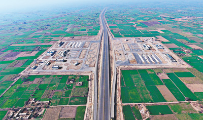 圖為巴基斯坦卡拉奇至拉合爾高速公路第三標(biāo)段項(xiàng)目鳥瞰圖。
