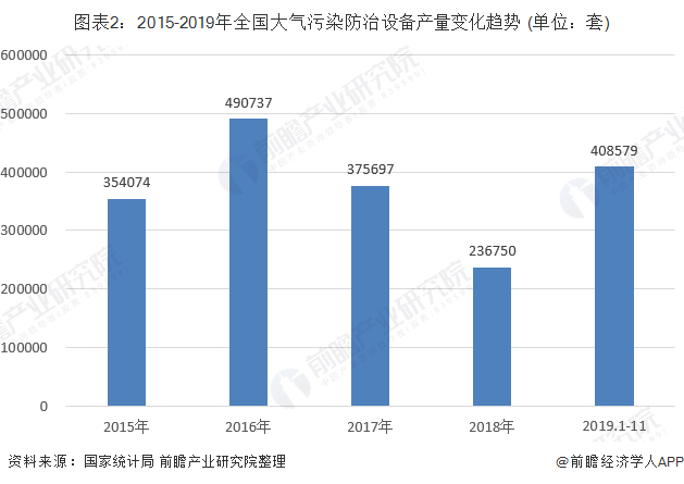 在節(jié)能環(huán)保政策趨嚴的背景下,我國大氣污染行業(yè)得到發(fā)展,大氣污染防治設備產(chǎn)量增長加快。根據(jù)數(shù)據(jù)統(tǒng)計,2018年我國大氣污染防治設備產(chǎn)量為23.68億臺,同比下降了41.67%。2019年1-11月,全國大氣污染防治設備產(chǎn)量達到40.86億臺,超過2018年全年。大氣污染防治設產(chǎn)量回暖與國家節(jié)能環(huán)保政策趨嚴密切相關(guān)。