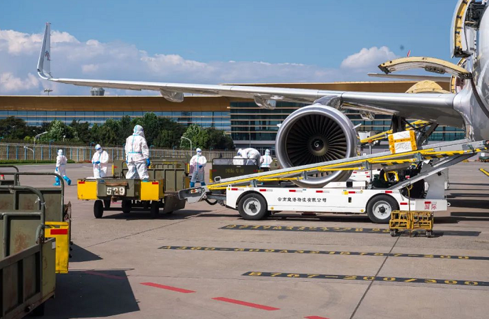 此外,昆明機場與海關、邊檢、駐場專班、航司等各保障單位共同建立了聯(lián)防聯(lián)控機制:一是嚴格執(zhí)行一航班一航班長、一培訓、一消殺、一復盤的“4個一措施”。二是所有入境旅客完成測溫、核酸采樣、健康申報和邊檢、海關查驗并提取行李后,在S1衛(wèi)星廳行李提取處由地服人員引導登上昆明市駐場專用轉(zhuǎn)運車輛,地服人員與轉(zhuǎn)運人員完成現(xiàn)場交接后,轉(zhuǎn)運車輛經(jīng)飛行區(qū)2號道口駛出昆明機場,直接將旅客運送至隔離酒店進行隔離。三是入境旅客托運行李從所在航班上搬運至行李運輸車輛時,進行第一次消殺,待行李統(tǒng)一運送至S1衛(wèi)星廳行李分揀大廳后,進行第二次消殺。四是各保障單位所有工作人員需著三級防護統(tǒng)一進入工作區(qū)域開展保障,保障工作結(jié)束后,所有工作人員在指定方艙完成防護服脫卸,并統(tǒng)一乘坐專用車輛至昆明機場“兩集中”(集中住宿、集中工作)點休息。五是對入境航班保障工作人員實行“兩集中”管理,兩集中點居住人員嚴格落實“14+7+7”舉措,即14天封閉管理作業(yè)+7天集中隔離醫(yī)學觀察+7天居家健康監(jiān)測。所有保障工作人員需完成3針劑疫苗,實施2天一次核酸檢測,專業(yè)消殺人員及醫(yī)廢垃圾處置人員每天開展一次核酸。六是每一班國際入境航班保障結(jié)束后,昆明機場立即對專用區(qū)域及保障使用的車輛和設施設備開展全面消殺。