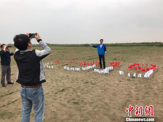 外場(chǎng)觀眾在地上擺放的c919圖案的旗幟前合影!⊥踝訚 攝