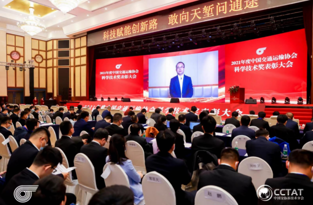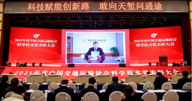 大會(huì)頒獎(jiǎng)儀式在激揚(yáng)奮進(jìn)的音樂聲中隆重舉行,與會(huì)領(lǐng)導(dǎo)嘉賓為獲得“2021年度中國交通運(yùn)輸協(xié)會(huì)科學(xué)技術(shù)獎(jiǎng)”的部分獲獎(jiǎng)代表頒發(fā)獎(jiǎng)狀和獎(jiǎng)杯。