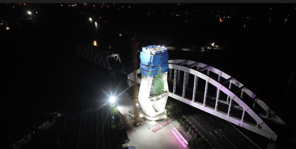 7月7日拍攝的木蘭溪特大橋萬(wàn)噸主塔。