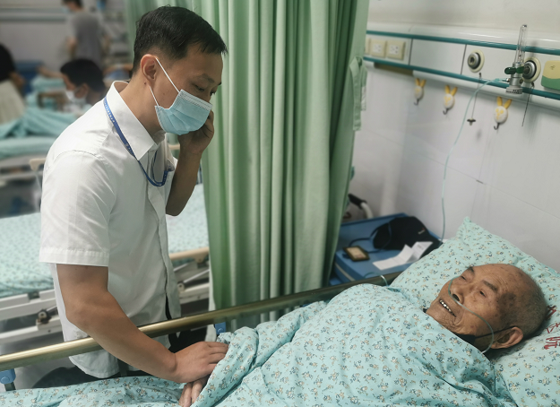 經(jīng)過(guò)急診科醫(yī)護(hù)人員的緊急救治,老人逐漸恢復(fù)了意識(shí)。朱正威耐心詢(xún)問(wèn)老人,得知老人姓周,垷坦人。朱正威幫周大爺聯(lián)系了家屬,離老人最近的三兒子在義烏工作,聽(tīng)聞此事,正由義烏回蘭的路上。已經(jīng)恢復(fù)清醒的老人驚魂未定,拉著朱正威的手久久不肯放開(kāi)。朱正威也一直拉著老人的手耐心安撫寬慰他。在這握著手溫情寬慰的五十分鐘里,老人逐漸放寬了心。隨后,朱正威又細(xì)心陪周大爺做完各式檢查。