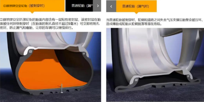 那么與“防爆輪胎”相比,中橡狼牌涂覆式刺扎自密封輪胎又有何不同呢?