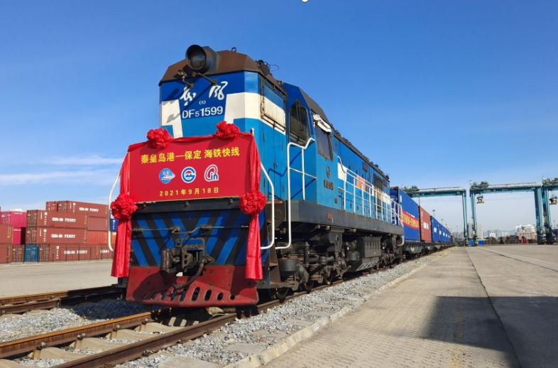 9月18日,首列保定—秦皇島海鐵聯運集裝箱列車由保定京雄保國際智慧港抵達秦皇島港。