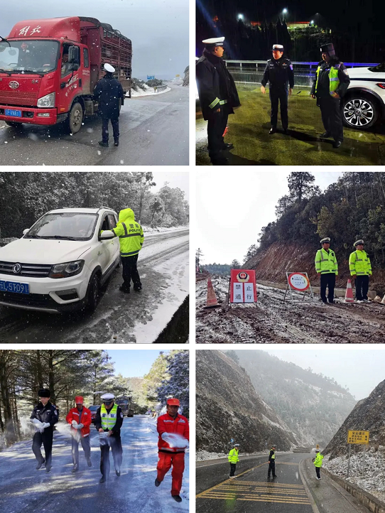 當(dāng)日晚,大理市境內(nèi)320國道鳳儀路段、關(guān)巍路大麥地路段以及關(guān)賓路、鳳儀后山等路段將出現(xiàn)霜凍天氣,彌渡縣境內(nèi)九頂山、楚大高速公路彌渡收費(fèi)站等段出現(xiàn)降雨降雪天氣,對(duì)道路交通安全造成不良影響,大理市、彌渡交警大隊(duì)及時(shí)派出警力加強(qiáng)巡邏和對(duì)重要點(diǎn)段的值守,全力以赴抗擊雨雪保障道路交通暢通和安全。