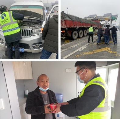 現(xiàn)場(chǎng)收費(fèi)班長王楚乾第一時(shí)間來到故障車處,經(jīng)現(xiàn)場(chǎng)查看發(fā)現(xiàn)貨車的水箱開鍋了,此時(shí)后方持續(xù)來車,為避免發(fā)生安全事故,現(xiàn)場(chǎng)收費(fèi)人員齊心協(xié)力幫助司機(jī)將車輛推至外廣場(chǎng)安全區(qū)域,及時(shí)在車后擺放警示反光錐;同時(shí)為司機(jī)提供維修工具和熱氣騰騰的泡面,現(xiàn)場(chǎng)收費(fèi)人員還幫助司機(jī)給水箱加水降溫,一場(chǎng)即將發(fā)生的車輛火災(zāi)事故,在收費(fèi)人員的熱心助力下變得煙消云散,車道恢復(fù)了正常通行秩序。