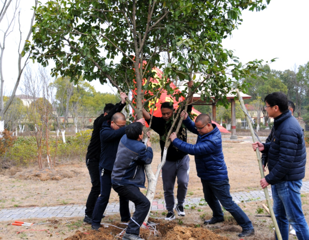 活動現(xiàn)場,參加植樹的黨員青年個個熱情洋溢,干勁十足,黨員同志分工協(xié)作、有序植樹。挖坑、搬樹苗、揮鍬鏟土、填土壓實、提水澆灌,大家三倆一組,通力合作,干勁十足,各個環(huán)節(jié)銜接有序,配合默契,到處都是忙碌的身影,到處都有勞作的歡聲笑語……栽好樹后,孫德謙書記還不忘向參加活動的黨員普及環(huán)保知識、環(huán)保理念,號召更多的人加入到護綠養(yǎng)綠的行列中,一起享受勞動的快樂,為美化江西交通環(huán)境盡一點綿薄之力。