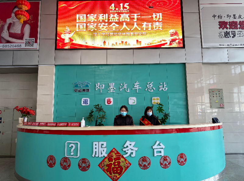 另一組“溫馨家園”志愿者以即墨汽車總站為宣傳陣地,盡量減少人員聚集,充分利用場站等公共場所,在LED大屏幕上滾動播放國家安全公益海報、短片以及國家安全教育日宣傳標(biāo)語,使大家對國家安全的基本內(nèi)涵、涉及的領(lǐng)域、法律法規(guī)以及如何從自身去維護(hù)國家安全有一個大概的了解。