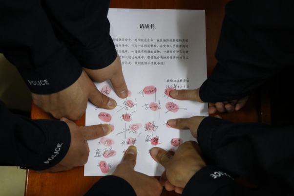 “不計(jì)報(bào)酬,無(wú)論生死,我們時(shí)刻準(zhǔn)備著”的錚錚誓言震耳欲聾!短短半天時(shí)間,40名黨員民警全部主動(dòng)請(qǐng)戰(zhàn)!一封封請(qǐng)戰(zhàn)書(shū),鮮艷的紅手印,錚錚的誓言,讓所有民輔警熱血沸騰,斗志昂揚(yáng),再次驗(yàn)證了移民管理隊(duì)伍是“關(guān)鍵時(shí)刻能拉得出、沖得上、打得贏”的政治過(guò)硬的鋼鐵之師!