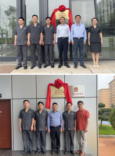5月26日上午,隨著兩塊綢布緩緩揭開(kāi),湖北金盛蘭冶金科技有限公司訴訟服務(wù)站、嘉魚(yú)縣武漢新港潘灣工業(yè)園訴訟服務(wù)站揭牌運(yùn)行。這是嘉魚(yú)法院積極響應(yīng)推動(dòng)人民法庭高質(zhì)量發(fā)展的又一重要舉措。