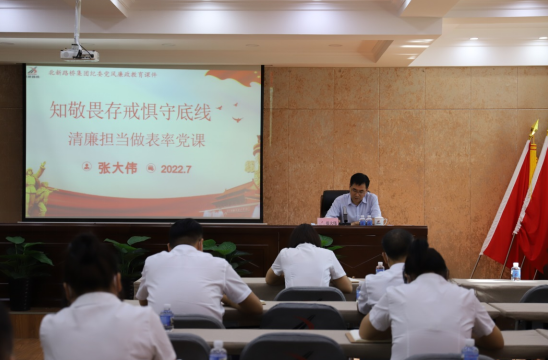 為進一步推進第24個黨風廉政教育月活動深入開展,7月15日下午,北新路橋集團紀委書記張大偉,深入國際工程事業(yè)部和兵團交建公司,以“知敬畏、存戒懼、守底線,清廉擔當作表率”為題,給全體黨員干部上了一堂感人至深的廉政黨課。
