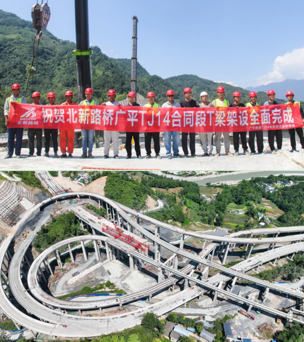 近日,隨著平武樞紐互通九綿加寬橋右幅10-2預(yù)制T梁精準(zhǔn)落位,標(biāo)志著北新路橋集團(tuán)西安分公司廣平高速TJ14合同段全線T梁架設(shè)任務(wù)圓滿完成,為廣平高速全線通車目標(biāo)奠定了堅實(shí)基礎(chǔ)。