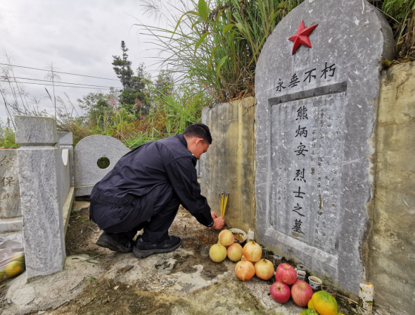 祭奠英烈忠魂、緬懷革命先烈。金廠邊境派出所組織民警前往轄區(qū)熊炳安烈士陵墓開展祭奠活動,期間,全體民輔警對烈士墓進行清掃,為烈士獻上水果,默哀1分鐘,表達了對革命先烈無限敬意和哀思。在莊嚴肅穆的祭奠儀式中,號召全體民輔警學習革命先烈不畏犧牲、舍身忘死的無私奉獻精神。在日常工作要做到不講條件、講奉獻,努力為邊境安全穩(wěn)定做出應有的貢獻。