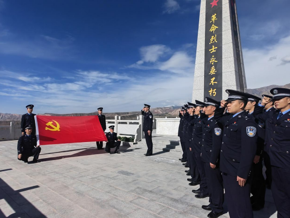 “我志愿加入中國共產(chǎn)黨,擁護(hù)黨的綱領(lǐng)......” 9月30日,博孜墩邊境派出所開展“祭英烈、憶初心”烈士紀(jì)念日活動,深切緬懷先烈不朽功績,全體民警在莊嚴(yán)的革命烈士紀(jì)念碑下,面對鮮紅的黨旗,右手握拳,莊嚴(yán)宣誓。