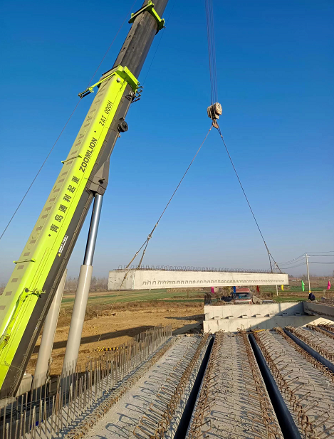 11月5日,在青島西海岸新區(qū)王臺(tái)街道東漕汶大橋施工現(xiàn)場(chǎng),隨著最后一片20米長(zhǎng)、重達(dá)39.8噸的預(yù)應(yīng)力混凝土空心板徐徐落下,大橋81片梁板全部吊裝完畢,預(yù)示著橋梁主體結(jié)構(gòu)完工。