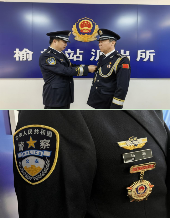 佩戴一次從警榮譽(yù)。榆林站派出所黨支部書記馬嘯為黨員民警馬利佩戴上級黨委頒授的“從警三十年紀(jì)念章”,為老同志三十年如一日的辛苦付出表示深深感謝。馬利表示“30年的時光獻(xiàn)給警察事業(yè),我是驕傲自豪的,不負(fù)此行,無怨無悔!”