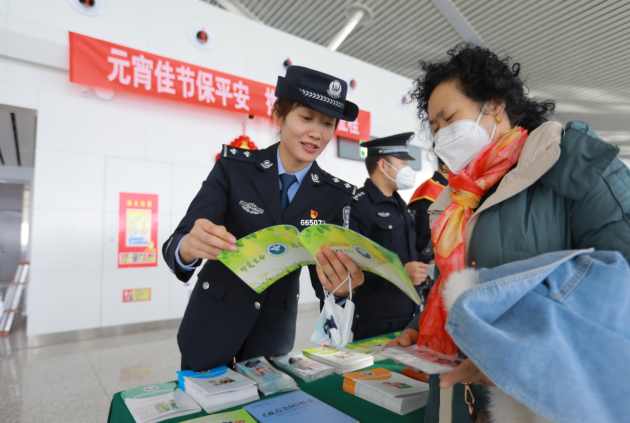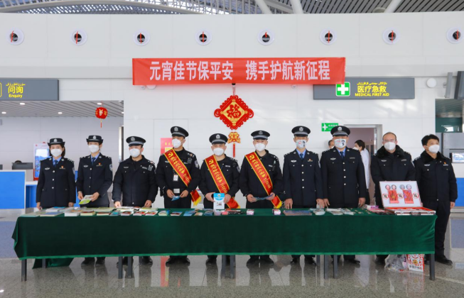 元宵節(jié)闔家團(tuán)圓,新疆喀什出入境邊防檢查站聯(lián)合喀什機(jī)場(chǎng)公安分局、禁毒大隊(duì)、反詐中心一同走進(jìn)喀什國(guó)際機(jī)場(chǎng),開(kāi)展“元宵佳節(jié)保平安 攜手護(hù)航新征程”主題普法活動(dòng)。