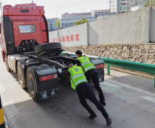 4月9日下午,一輛臨時(shí)牌照的掛車(chē)車(chē)頭行駛至汀祖收費(fèi)站出口2號(hào)道時(shí),突然熄火。司機(jī)下車(chē)?yán)U費(fèi)后多次嘗試點(diǎn)火無(wú)果,急的下車(chē)直跺腳。當(dāng)班班長(zhǎng)李航立即上前了解情況,得知貨車(chē)拋錨,找不到故障原因?紤]到故障車(chē)輛停在出口車(chē)道內(nèi),不僅存在安全隱患,還極易造成交通堵塞。為了盡快將后方排隊(duì)車(chē)輛疏導(dǎo)放行,當(dāng)班班長(zhǎng)組織收費(fèi)員合力將故障車(chē)推至收費(fèi)站外廣場(chǎng)安全地帶,同時(shí)幫車(chē)主在車(chē)輛后方放置錐形標(biāo)志桶,指引司機(jī)收費(fèi)站前方幾百米處就有汽車(chē)修理廠。事后司機(jī)對(duì)收費(fèi)站工作人員的真情服務(wù)表示認(rèn)可與滿意。