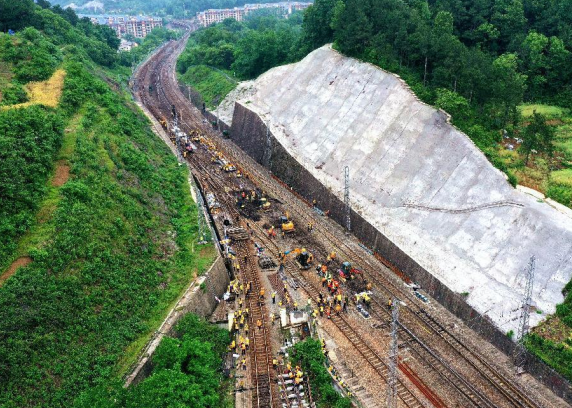 當(dāng)天,中國(guó)鐵路武漢局集團(tuán)有限公司麻城工務(wù)段組織100余名干部職工成組更換京九線新縣站上行3號(hào)道岔,進(jìn)一步提升線路設(shè)備質(zhì)量。