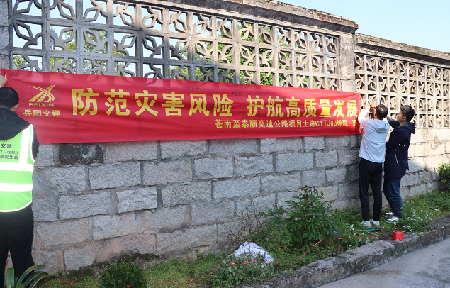 “我們地處浙江南部,受季風(fēng)影響強烈,洪澇、臺風(fēng)、雷電、強降雨、洪澇、滑坡、泥石流等災(zāi)害均可能發(fā)生,且發(fā)生的頻率比較高……我們應(yīng)當(dāng)知曉身邊自然災(zāi)害并掌握避險技能,保證自身和身邊人的安全。”宣傳周首日,項目安環(huán)部緊緊圍繞宣傳周主題召開動員部署會,組織全體職工進(jìn)行宣誓和簽名,并在項目駐地周邊懸掛宣傳橫幅,張貼宣傳海報、發(fā)放宣傳單等,將防災(zāi)減災(zāi)知識傳達(dá)給每個從業(yè)人員,切實保障活動注重效果、不走過場,確保工作取得實效。