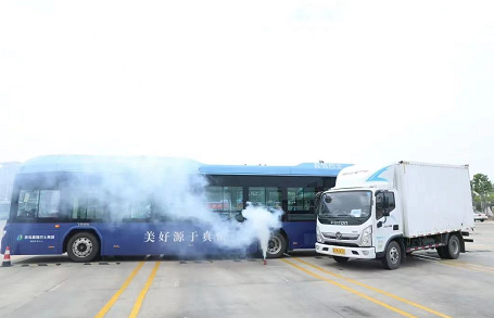 演練模擬一輛貨車(chē)因駕駛員疲勞駕駛與一輛氫能源公交車(chē)發(fā)生追尾,公交駕駛員快速進(jìn)行應(yīng)急處置,撥打電話(huà)報(bào)警求救,第一時(shí)間組織乘客開(kāi)展自救和互救工作。接警后,各有關(guān)部門(mén)快速響應(yīng),各崗位人員緊密協(xié)作,緊張有序的逐項(xiàng)落實(shí)應(yīng)急措施,通過(guò)確認(rèn)險(xiǎn)情、先期處置、醫(yī)療救援、善后處理等,順利完成各項(xiàng)預(yù)定科目。