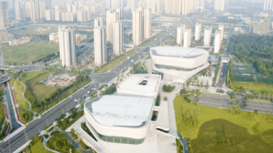 成都高新體育中心,總建筑面積20.16萬平方米,從高空中俯視場館如同三顆白色明珠,鑲嵌在一片綠色生態(tài)之中,場館設(shè)計(jì)靈感來源于中國四大名錦之一“蜀錦”,遵循了“韻動絲路、綠秀錦城”的設(shè)計(jì)理念。