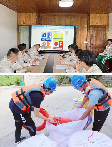 領導帶頭,加強值守。項目部負責人多次組織召開防臺工作會議,開展防臺防汛教育,研判項目安全風險,部署防臺工作。項目領導班子和黨員干部積極帶頭值班,并每日對駐地進行安全巡查,確保消除安全隱患,及時應急響應,守護項目的人員安全財產(chǎn)。