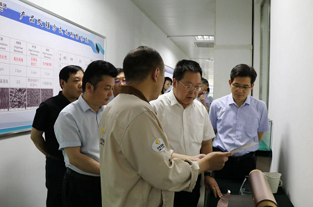劉宗明一行實地參觀了中色奧博特壓延銅箔生產(chǎn)線,召開了濟南大學(xué)—中色奧博特產(chǎn)學(xué)研合作交流會,對中色奧博特近年來高質(zhì)量發(fā)展情況給予了高度評價。