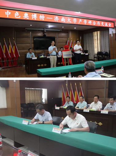臨清市委副書記、市長雷啟軍主持會議并致歡迎辭,徐宗西董事長介紹了公司改革發(fā)展、科技創(chuàng)新、人才建設(shè)情況。劉宗明校長圍繞“共敘友情、共話未來、共謀發(fā)展”主題,深化了自2013年起同中色奧博特建立長期戰(zhàn)略合作的深厚友誼,介紹了濟南大學(xué)產(chǎn)學(xué)研合作情況、應(yīng)屆畢業(yè)生就業(yè)形勢,希望與中色奧博特在招聘就業(yè)、研究生聯(lián)合培養(yǎng)、成果轉(zhuǎn)化、科學(xué)研究等方面加強合作交流,促進校企雙方互利共贏,協(xié)同發(fā)展。